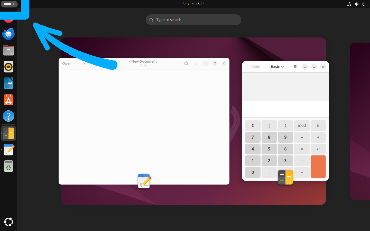לגנום היכולת החזקה מאוד לנהל כמה “סביבות עבודה” בו-זמנית. פתחו שנית את מסך האפליקציות והפעם חפשו “”, לחצו אנטר, וכך יפתח מחשבון: